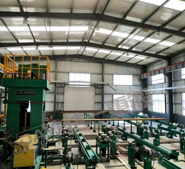管端加厚機是我公司針對石油鉆桿、油管的加厚工藝研發(fā)的新型特種設備,管端加厚的目的主要是為了保證鋼管在管端車加工截面處的強度,鋼管加厚類型有外加厚、內(nèi)加厚、內(nèi)外加厚三種工藝。加厚機組有加厚機、輔機及加熱系統(tǒng)等組成,即對鋼管進行橫向運輸、加熱及端部加厚。
