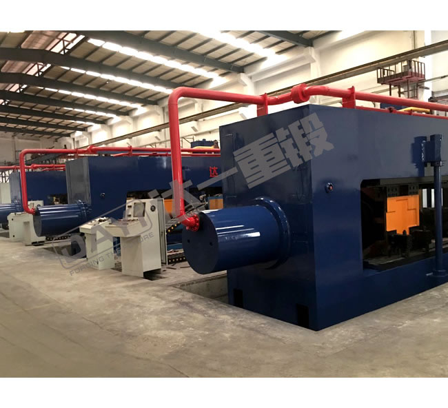 汽車車橋擠壓生產(chǎn)線是我公司針對掛車車橋生產(chǎn)工藝自主開發(fā)的新型設(shè)備,具有自主知識產(chǎn)權(quán)。該生產(chǎn)線包含中頻加熱爐、送料機械手、車橋擠壓機等部分,將原車橋摩擦焊接、單邊旋壓等工藝替換為雙頭熱擠壓工藝,可一次性擠壓出高質(zhì)量車軸,有效地提高了生產(chǎn)效率、降低了生產(chǎn)能耗。